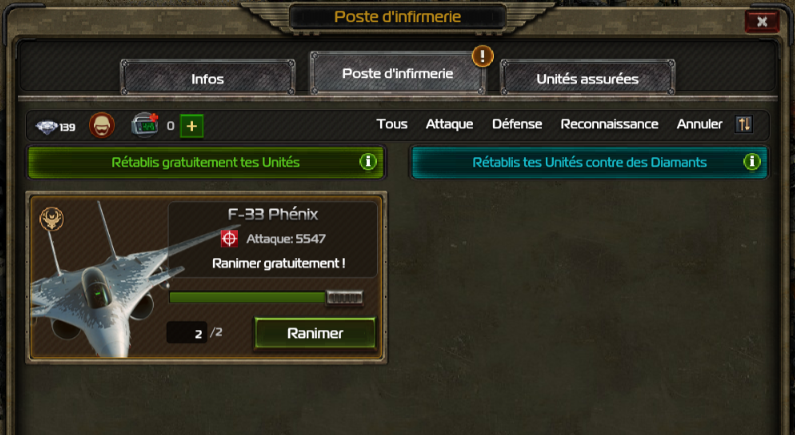 Lorsqu'un MQ-28 Héraut est perdu au combat, tu reçois un F-33 Phénix que tu peux récupérer gratuitement à l'infirmerie :